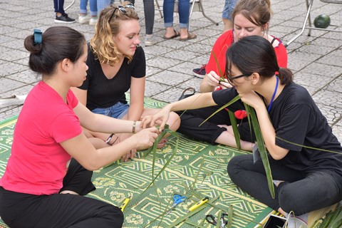 | Des visiteurs étrangers séduits par le programme de découverte de la Fête de la mi-automne. |