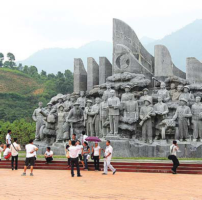| Des touristes visitant le monument de la Victoire de Muong Phang, ville de Diên Biên Phu. |