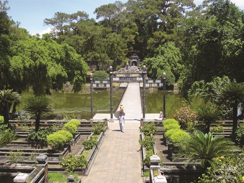 C’est ainsi le seul tombeau à avoir été édifié après la mort d’un souverain. Couvrant 18 ha, le tombeau de Minh Mang est un complexe architectural de 40 ouvrages dans un espace dominé par montagnes et rivières. Vu du ciel, il ressemble à une personne en plein sommeil, la tête reposant sur la montagne de Kim Phung et les jambes s’étendant à la confluence des rivières. Les deux moitiés du lac de Trung Minh, sur les deux côtés du tombeau, ressemblent aux bras tendus. La tombe a été enrichie par de nombreux ouvrages, comme un lac de lotus, une maison commune, un jardin floral et une pinède. Un espace harmonieux et poétique, à l’image du souverain.