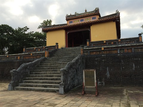 | Le pavillon des stèles en compte une avec la biographie du roi Minh Mang, écrite par son fils, le roi Thiêu Tri (1807-1847). |