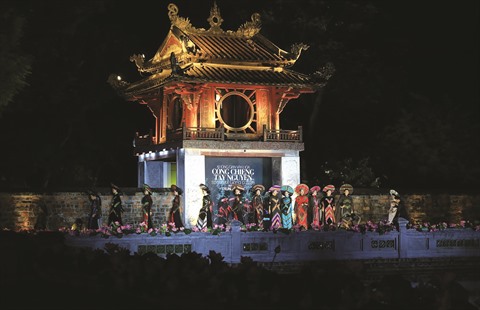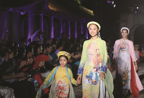 | Défilé d’áo dài au Temple de la Littérature à Hanoï, le 28 juin. |