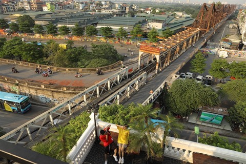 | Vue aérienne du pont Long Biên. |