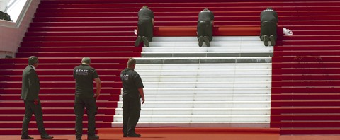 | Pose journalière du tapis rouges sur les 24 marches du palais. |