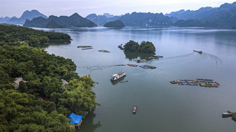 | Pisciculture en radeaux flottants dans la baie de Gia Luân, archipel de Cát Bà, ville de Hai Phong (Nord). |