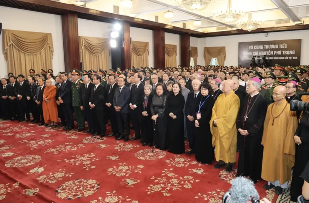 | Les délégués et la famille du secrétaire général du Parti, Nguyên Phu Trong, lors de la cérémonie commémorative, le 26 juillet. |
