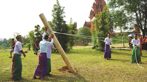 | L’élévation des colonnes de la maison, une cérémonie importante chez les musulmans Cham. |