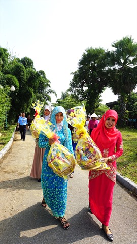 | Imam et jeunes récitant des prières du Salawat Nabi Moham Mach pour souhaiter bonne chance au propriétaire. |