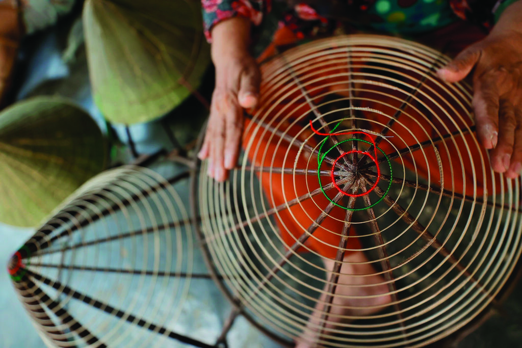 | Fabrication manuelle des chapeaux coniques en feuilles de lotus à Huê. |