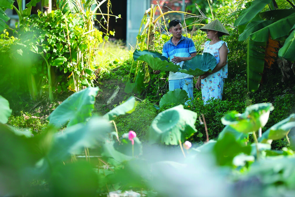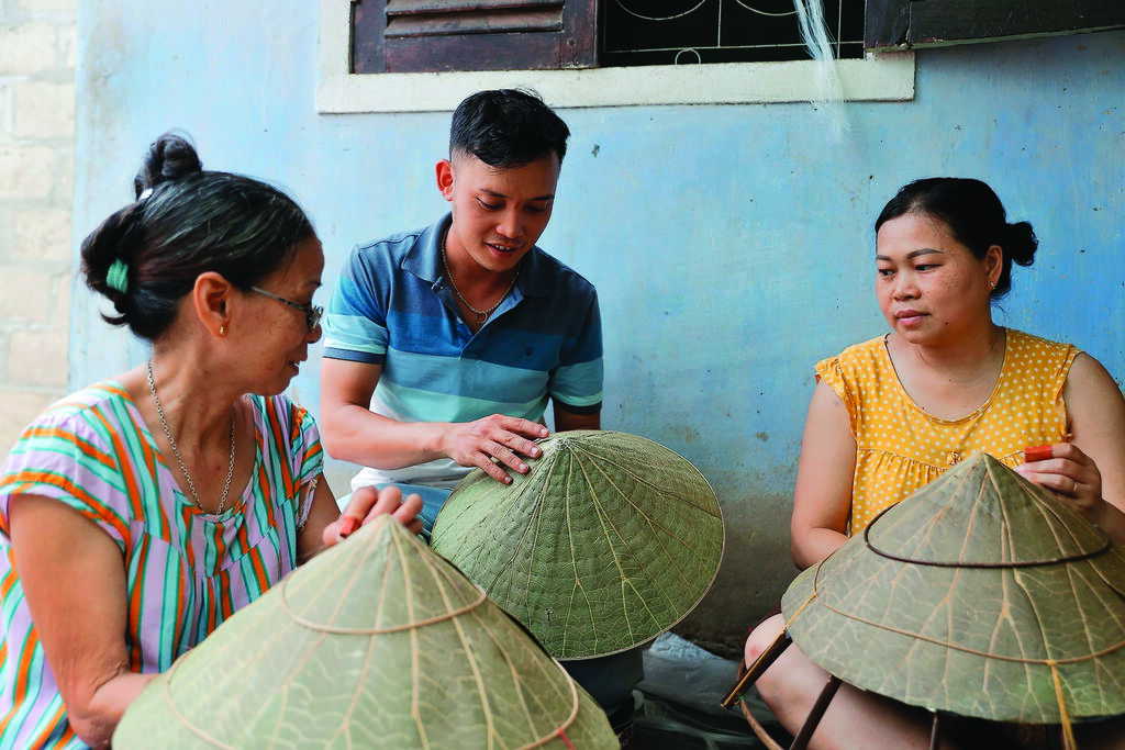 | Nguyên Thanh Thao discute avec deux artisanes du village traditionnel de Đôc So. |