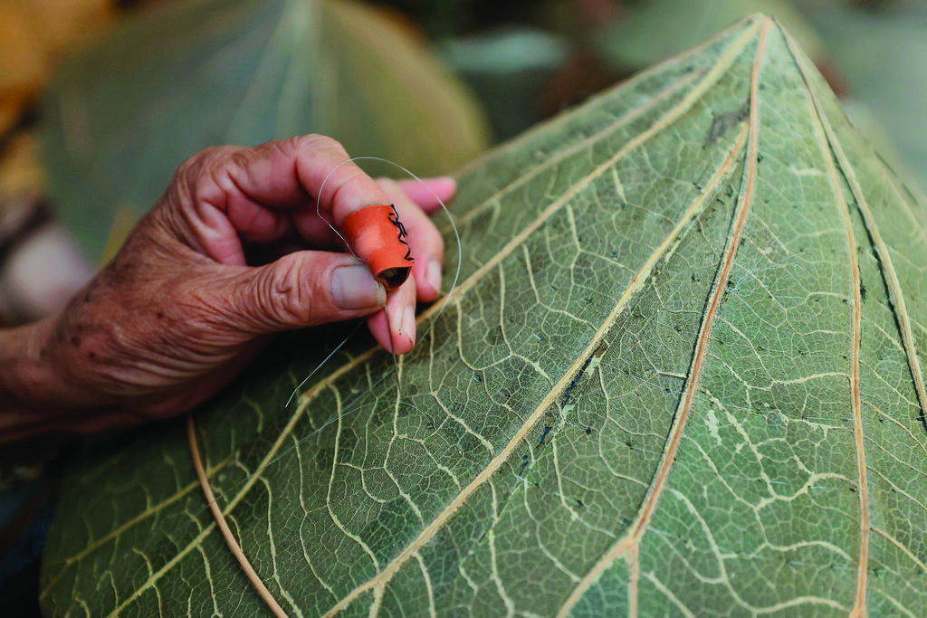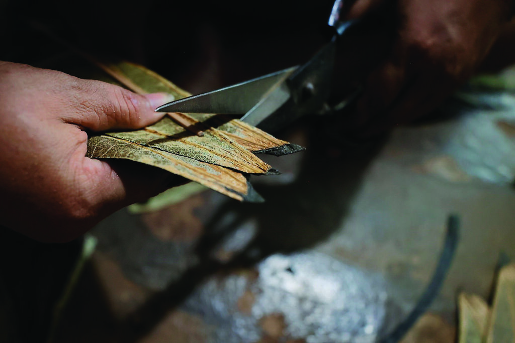 | Les feuilles de lotus sont traitées à travers plusieurs étapes avant d’être transformées. |