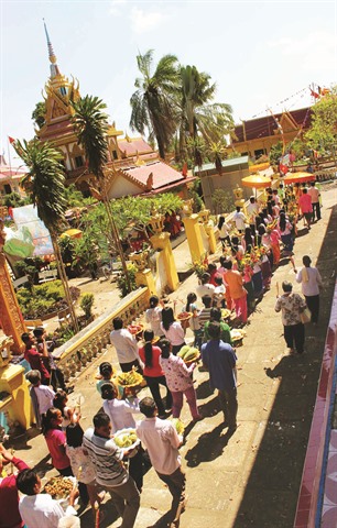 | Le bain de Bouddha constitue un rite important lors du Têt traditionnel des Khmers. |