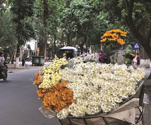 | Vélo ambulant chargé de fleurs à Hanoï. Photo : Dô Hà/CVN |