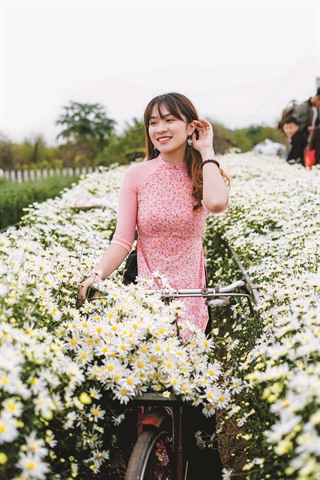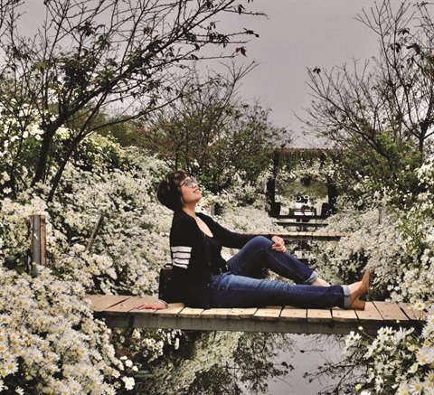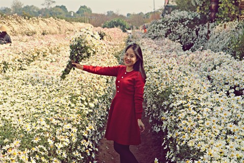 | Jeune fille posant dans un jardin de chrysanthèmes des Indes. Photo : Huong Linh/CVN |