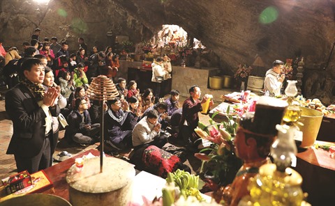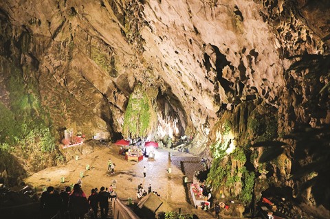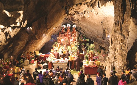 | Pèlerins dans la grotte Huong Tich. |