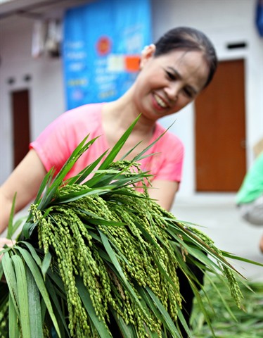 | Lors de la saison de côm, les villageois de Mê Tri travaillent d'arrache-pied. |