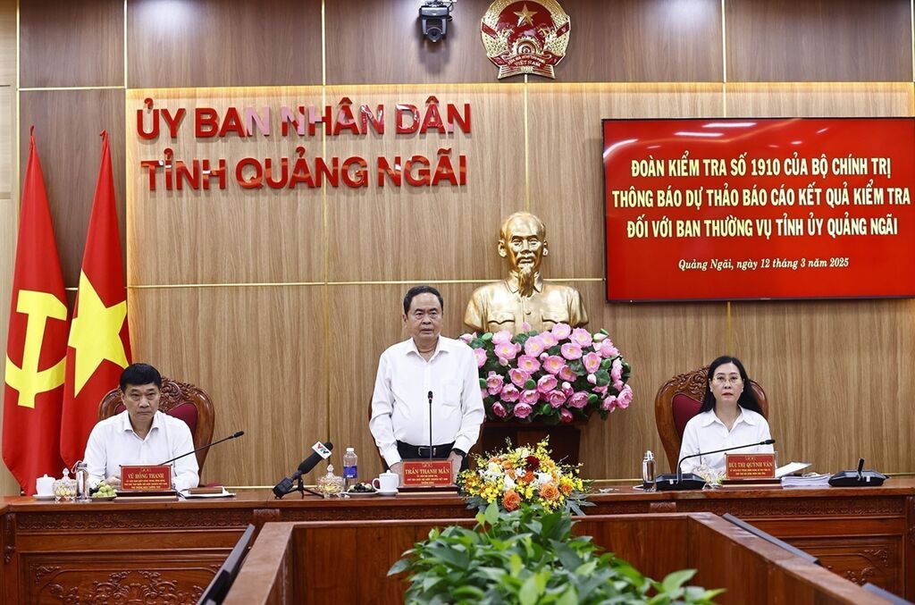| Le président de l'Assemblée nationale du Vietnam, Trân Thanh Mân, travaille avec la Permanence du Comité du Parti de Quang Ngai. |