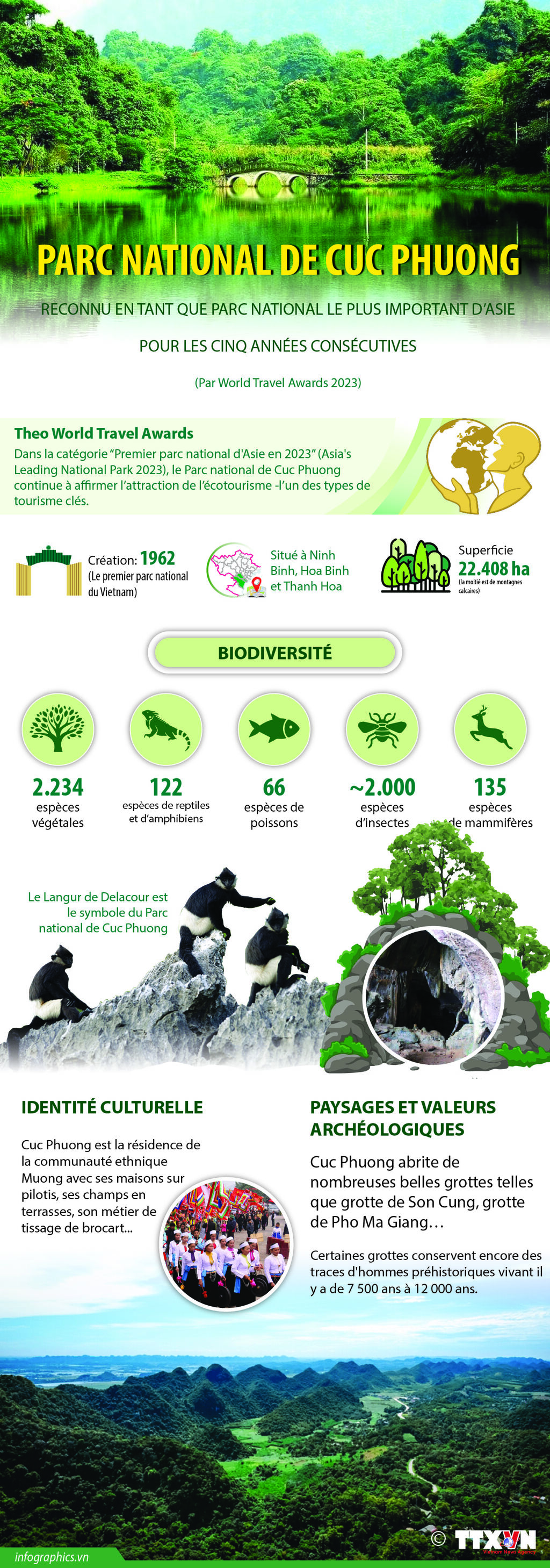 Les World Travel Awards 2023 ont récompensé le Parc national de Cuc Phuong comme le parc national le plus important d'Asie. Avec ce résultat, Cuc Phuong devient le plus important parc national d'Asie pendant cinq années consécutives de 2019 à 2023.
