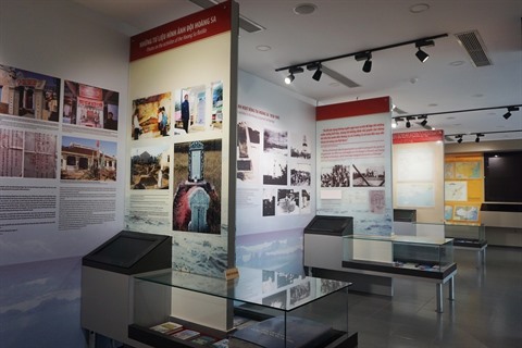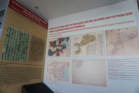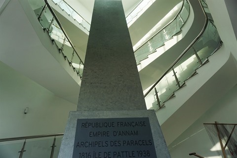 | Une borne de souveraineté à Hoàng Sa écrite en français reproduite dans la zone centrale de la galerie. |