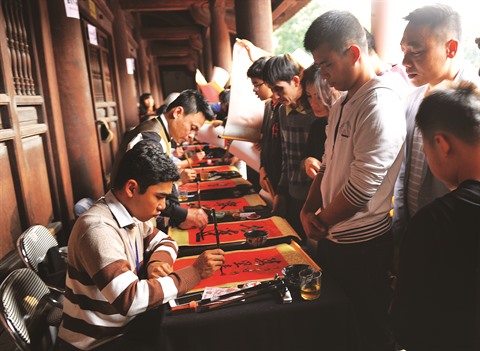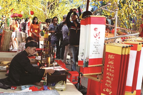 | Demander une calligraphie à l’occasion du Nouvel An est un beau trait culturel des Vietnamiens. |