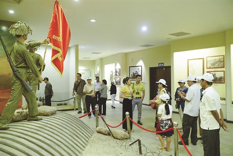 | Touristes au Musée de la victoire historique de Diên Biên Phu. |