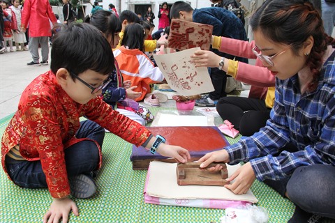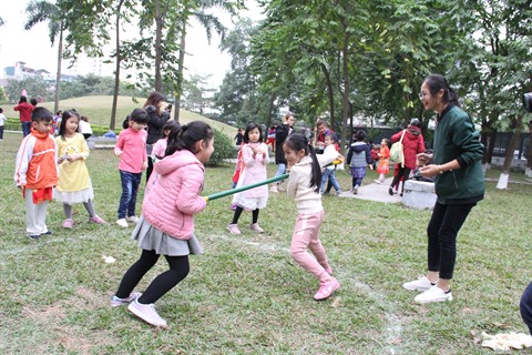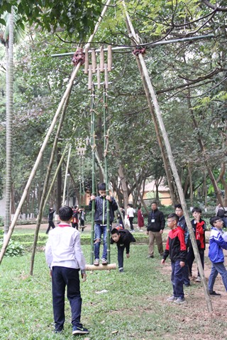 | Les petits aiment découvrir les jeux traditionnels au Musée d’ethnographie du Vietnam. |