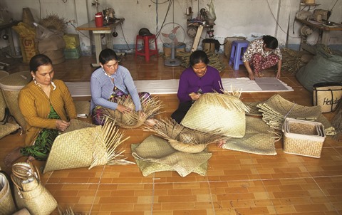 | Une volontaire (droite) dirige l’atelier de création de jouets à partir de feuilles. |