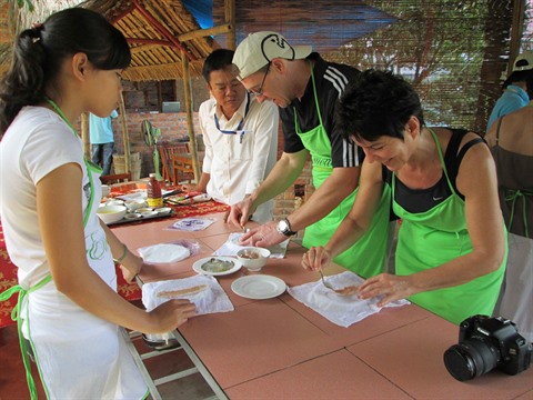 | Cân Tho - Ecolodge : faire du "banh da" |