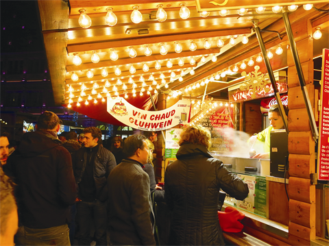 | La plupart des touristes goûtent le vin chaud aux épices, une spécialité alsacienne. |