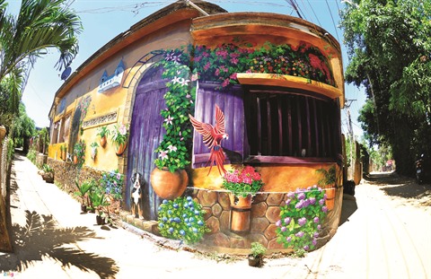 | Le chemin principal du village de Canh Duong est devenu un site attrayant grâce à ces peintures murales. |