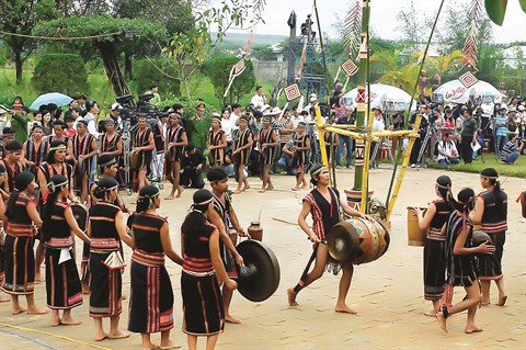| La troupe des gongs du village de Mrông Yô se produit souvent dans de grandes villes. |