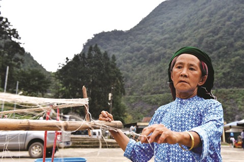 | Une femme H’mông file de la laine dans le district de Dông Van. |