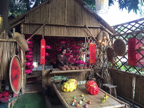 | Bon nombre de visiteurs s’adressent aux calligraphes pour demander de beaux idéogrammes pour décorer le salon lors du Têt. |