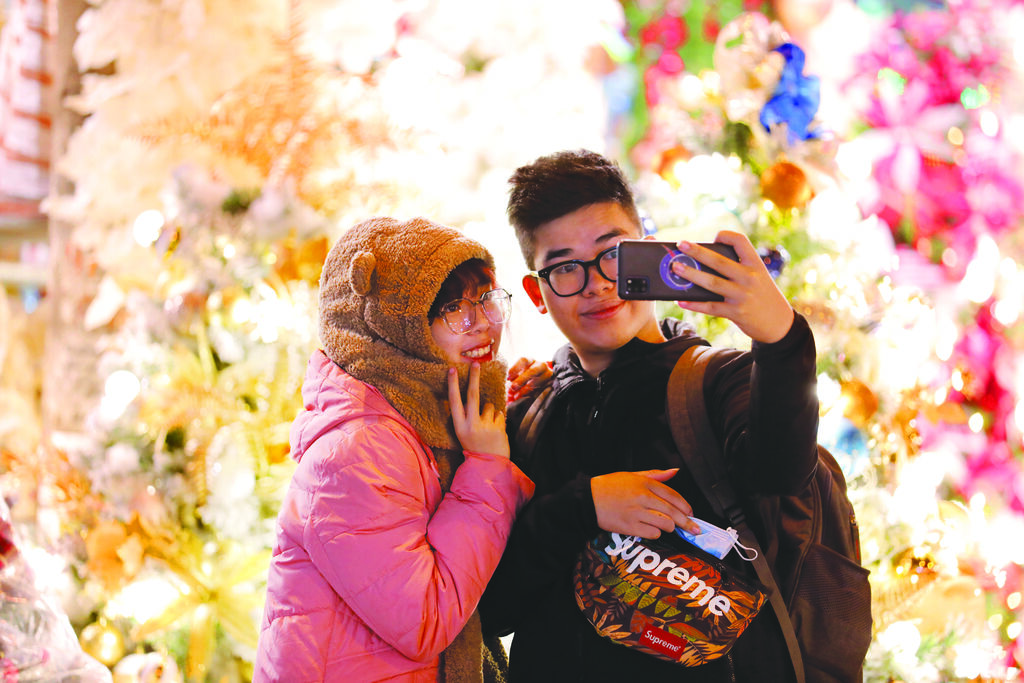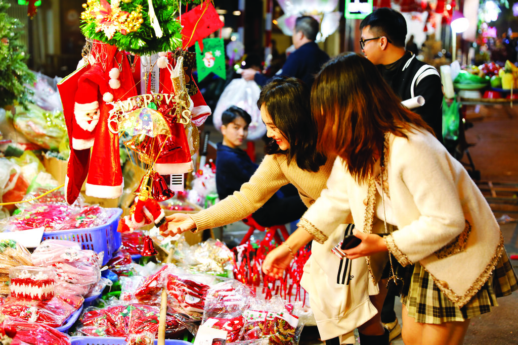 | La rue Hàng Ma, dans le Vieux quartier, est une des destinations de prédilection des touristes étrangers à l’occasion de Noël. |
