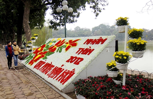À l'occasion du Têt traditionel du Dragon et du 82e anniversaire du Parti communiste du Vietnam (le 3 février), des centaines de pots de fleurs et de drapeaux ont fait leur apparition un peu partout dans la ville.