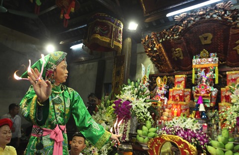 | Le chant châu van (médiumnité) est toujours un grand moment dans les rituels du hâu dông. |