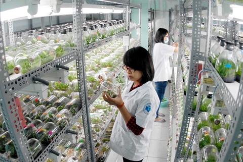 | Le laboratoire en culture des tissus dans la Zone de hautes technologies agricoles de Hô Chi Minh-Ville. Photo : Manh Linh/VNA/CVN |
