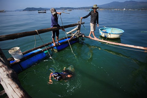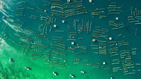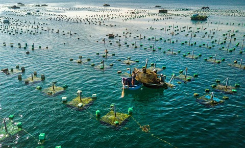 | Vue aérienne de la zone d’élevage de langoustes à Tuy An. |