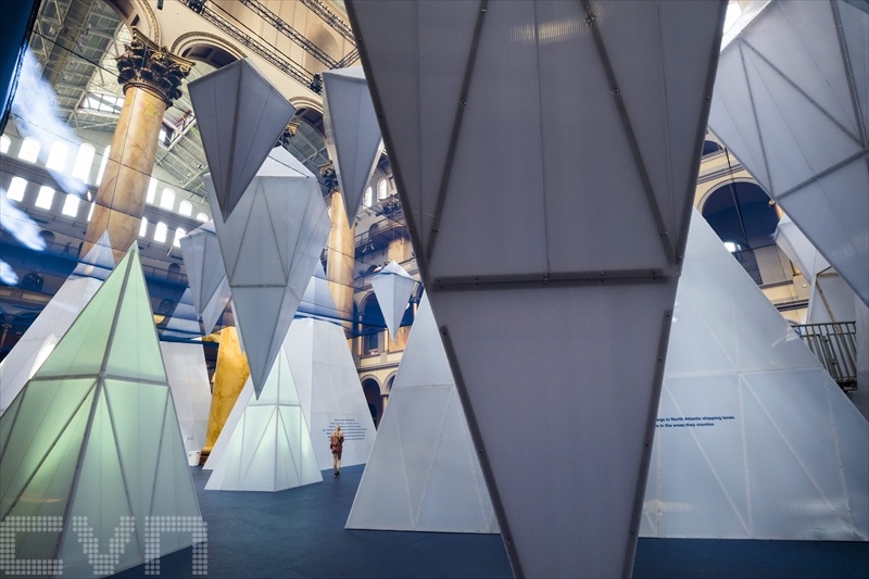 | Les visiteurs de l'exposition «Icebergs» déambulent à travers 30 structures prismatiques au National Building Museum de Washington, le 18 août 2016. L'exposition est censée évoquer le surréaliste monde sous-marin des champs de glace. Photo : EPA/VNA/CVN |