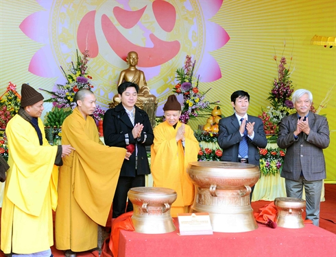 | L'Association nationale des historiens offre le tambour en bronze "Phù Vân Yên Tu" à l'occasion de l'ouverture de la fête de Yên Tu. |