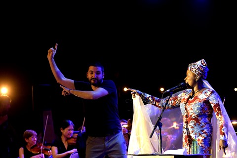 La chanteuse béninoise Angélique Kidjo et le trompettiste libanais Ibrahin Maalouf se sont offerts le luxe de se faire accompagner de l’Orchestre régional de Cannes-Provence-Alpes-Côte d’Azur dans lequel ils avaient incorporé des musiciens de leur formation respective. Le tout dirigé par Ibrahim Maalouf lui-même.