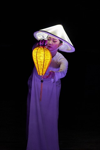 | Effets de lumière avec l'áo dài, le nón lá (chapeau conique) et la lanterne - les symboles de Hôi An |