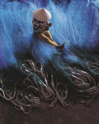 | Ravaudage d’un filet de pêche dans la province de Bac Liêu (Sud). |