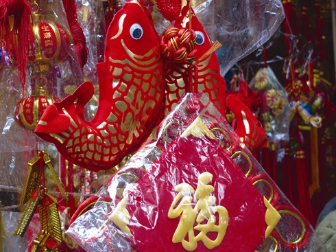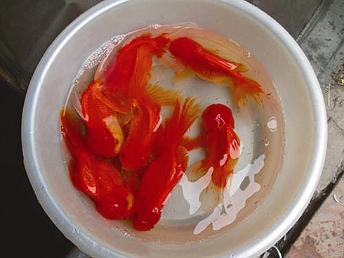 | Avec sa couleur rouge vif, symbole de prospérité et de bonne fortune, la carpe rouge est devenue une offrande pour le Génie du foyer. |