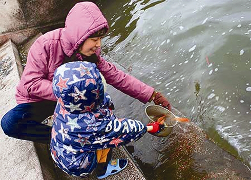 | Les carpes sont relâchées dans des étangs ou des rivières. |