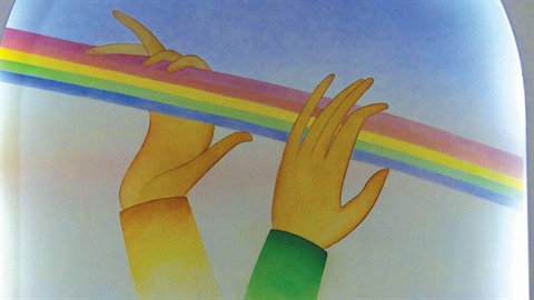 | Mains capturant un arc-en-ciel, symbolisant le rêve.