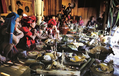 | Préparation des accessoires au service de la danse Rô-băm. |