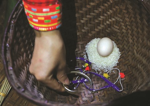 Parmi les offrandes, du riz, un œuf et des bracelets des membres de la famille.