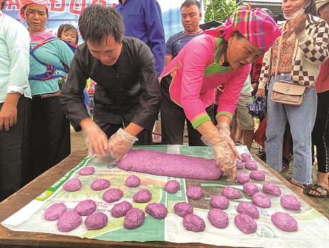 | Préparation de gâteaux de riz lors de la fête "Háu Đoong" des Giáy à Lai Châu. |