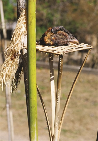 | Le patriarche du village réalise le rite cultuel. |
