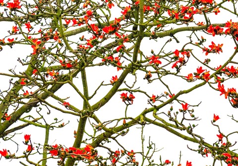 | Au 3e mois lunaire, l’arbre commence à donner des fleurs rouges caractéristiques. |